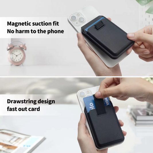 Mag Mate™ Leather Wallet - Mag-Safe Phone Stand - Drawstring for Easy Card Access. Multifunctional, Slim & Minimal Design